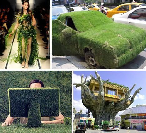 I find it amazing that the world of design is so greatly influenced by what problems we are dealing with at that moment. When we needed more efficient products at affordable prices, modernism was formed. When we had efficiency and needed more spice to our lives, post-modernism and aesthetics emerged. Now, we are facing a worldwide dilemma: Global warming. As a result a new genre of design is forming called "Green Design." It is a way of re-establishing oxygen levels that are being extinguished by high amounts of CO2 from the industrial age. I found these picture and they fascinated me. They are obviously not realist, but design is being used in advertisements and persuasive pieces to urge people to focus on preservation of our Earth. It makes me wonder if the future of design will revolve around nature and using plants and trees as decor. Foreshadowing? Possibly!